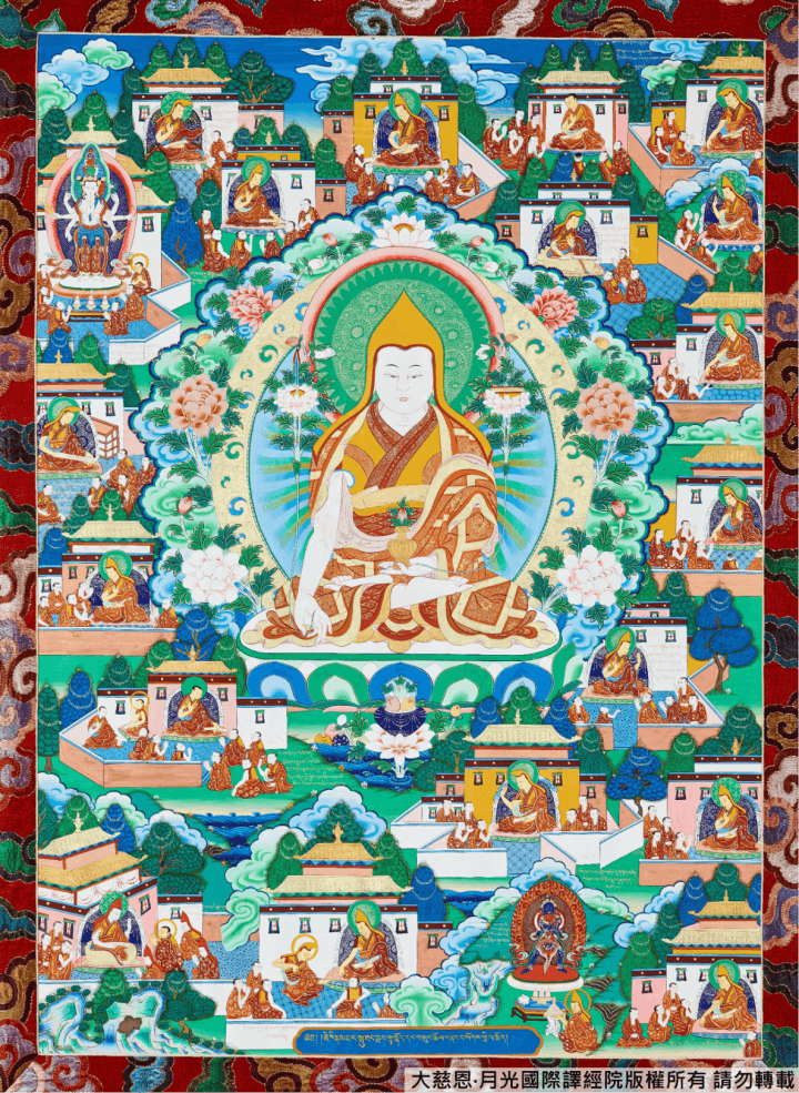 最重要的是到紫金寺(註 11),聽聞薩迦派大師──智者之王年本慶喜德仁波切講述《現觀》,年本上師(註 12)優越且善巧的講解,令大師極為嘆服。這位仁波切是至尊仁達瓦的上師,也因為這段因緣,連結了大師與仁達瓦上師此生再度相遇的法緣,開啟了一段師師相承的感人故事。